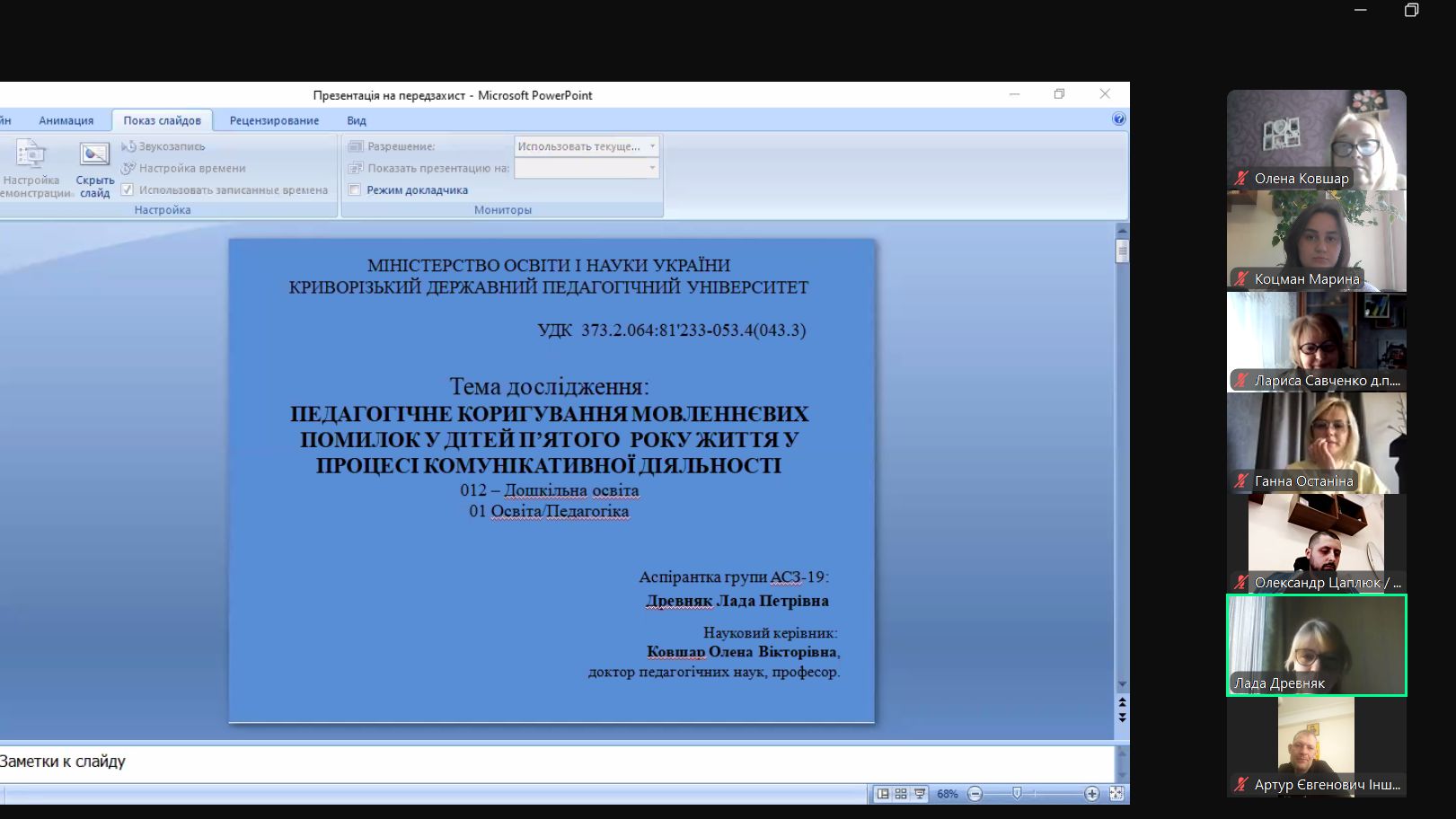 ЗАХИСТ АСПІРАНТКИ ЛАЗАРЕНКО А.В. 2025 р.