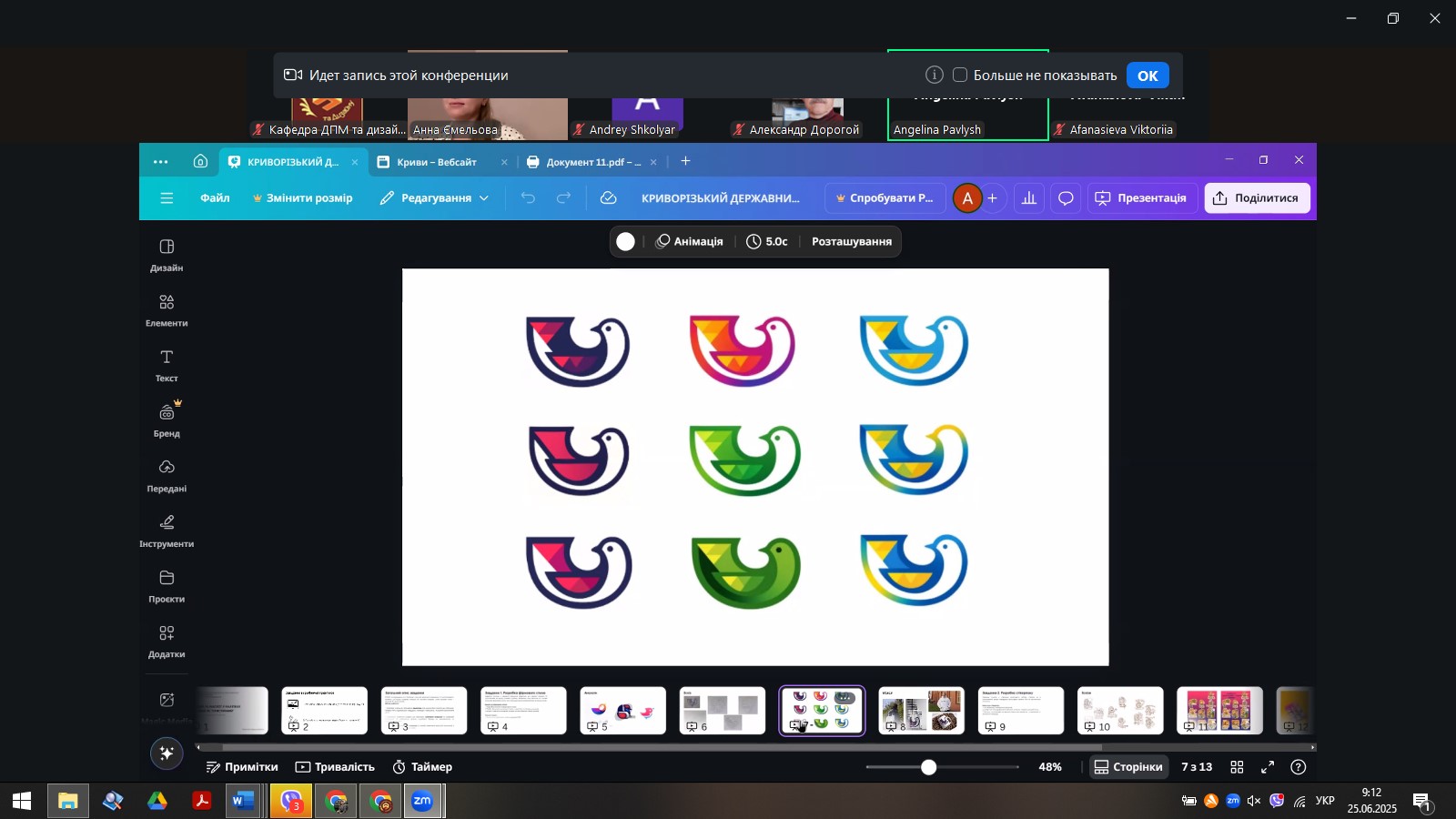 25 червня 2025 року відбулася підсумкова конференція з художньо-конструкторської практики студентів спеціальності 022 Дизайн, під час якої студенти 3 курсу презентували результати своєї практичної діяльності, поділилися здобутим досвідом та продемонстрували власні проєкти. Художньо-конструкторську практику студенти проходили на базах практики "Інститут розвитку міста Кривого Рогу" КМР, КП "Парковка та реклама" КМР, "Творча лабораторія-майстерня художньо-графічного відділення факультету мистецтв", Салон-ательє "Sirena".
