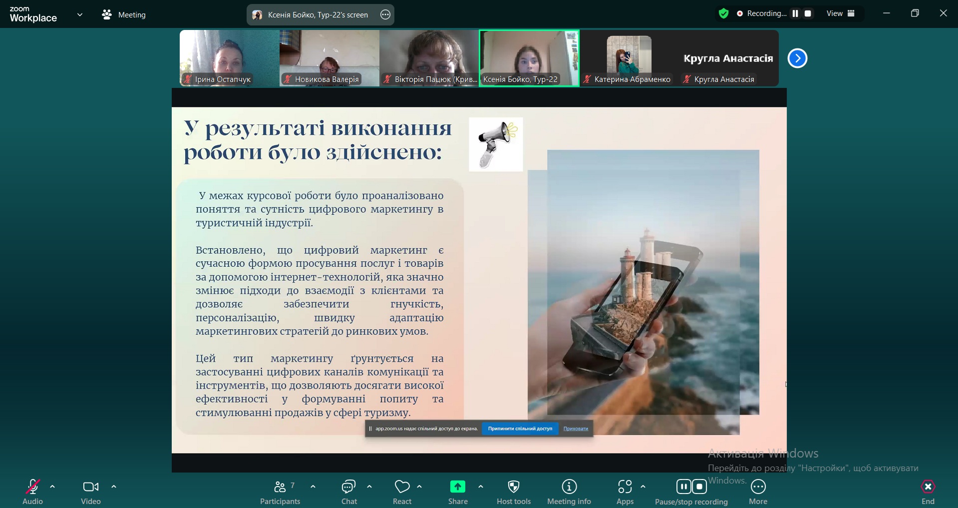 Під час захистів здобувачі освіти презентували результати своїх наукових досліджень в галузі туризму, продемонстрували навички наукового пошуку, структурування інформації, її аналізу та картографування, компетентності в розробці туристичних продуктів та порівняльного аналізу. Рівень засвоєння названих компетентностей відповідає вимогам, що висуваються до результатів навчання освітньої програми Туризм.