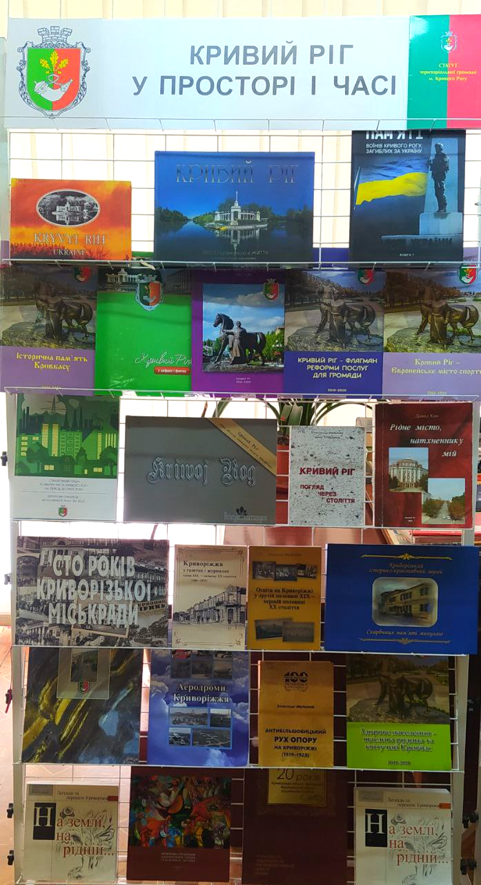 З 22 травня 2025 року на абонементі головного корпусу експонується тематична книжкова виставка «Кривий Ріг у просторі і часі». Представлено 24 документи.