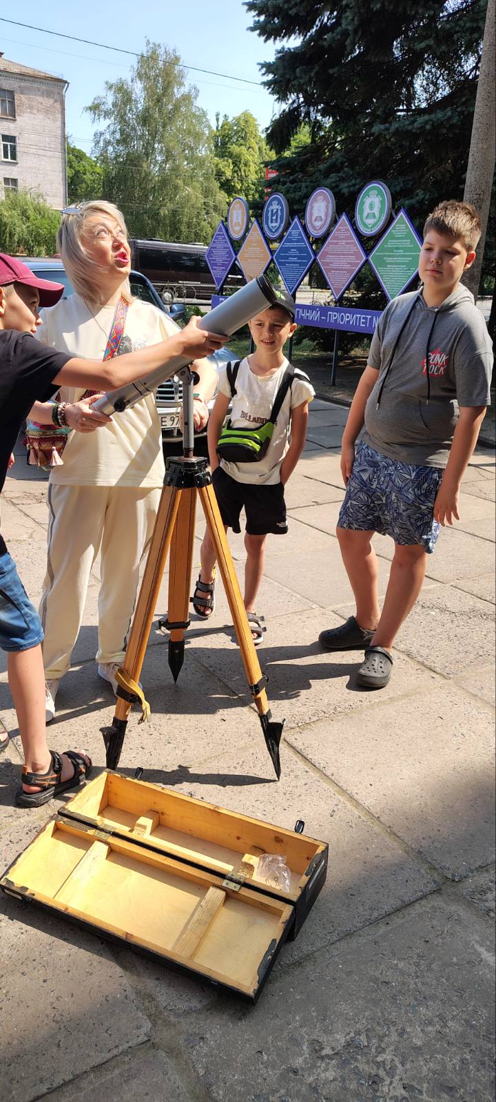 Під час екскурсії діти не лише ознайомилися з обладнанням, яке використовується для спостережень небесних тіл, а й самостійно спробували себе в ролі юних астрономів. За допомогою телескопів вони спостерігали за Сонцем (з використанням проєкцій та спеціальних захисних фільтрів), вивчали наземні об'єкти та отримали перші навички роботи з оптикою.