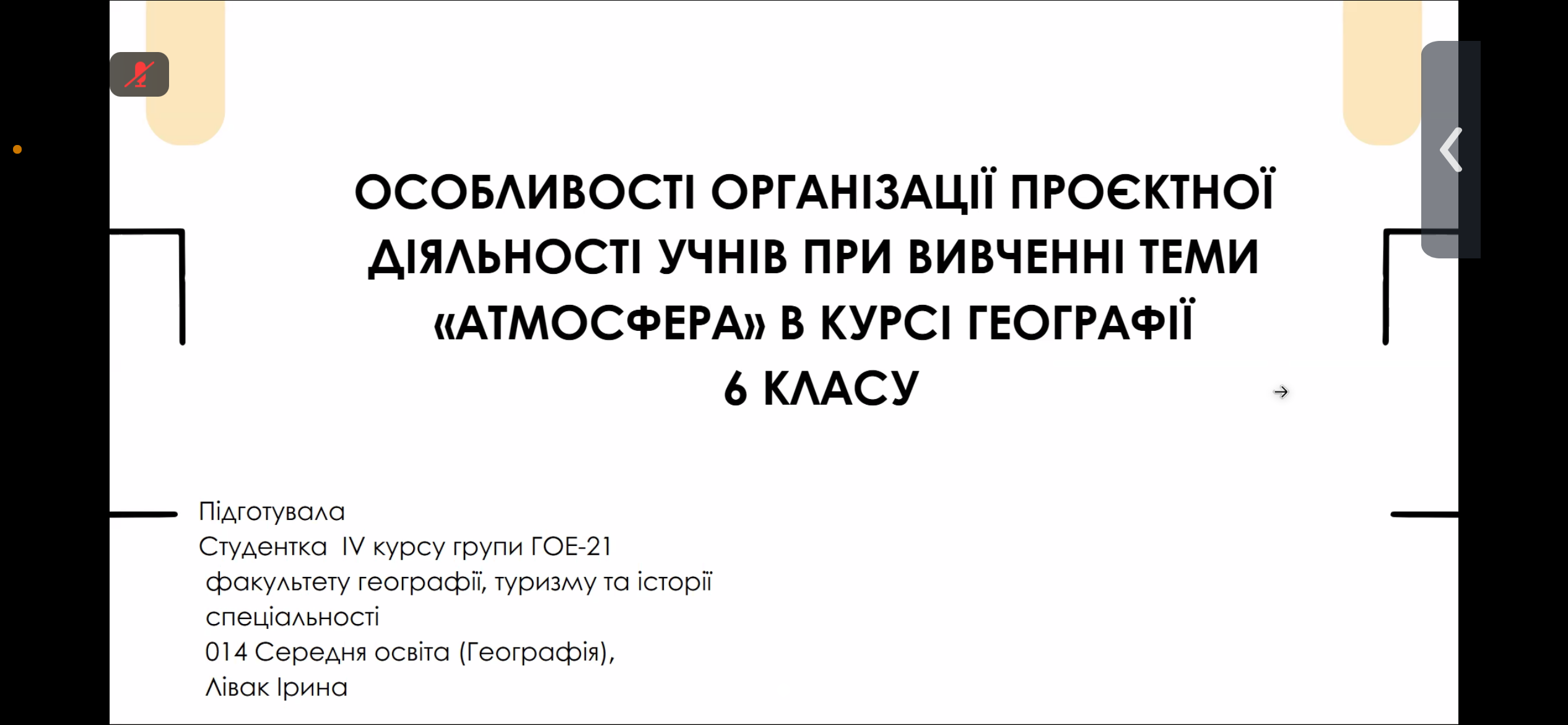 Лівак Ірина розглянула можливості проєктної технології у навчанні географії (дослідження «Особливості організації проєктної діяльності учнів при вивченні теми «Атмосфера» в технології курсі географії 6 класу»).