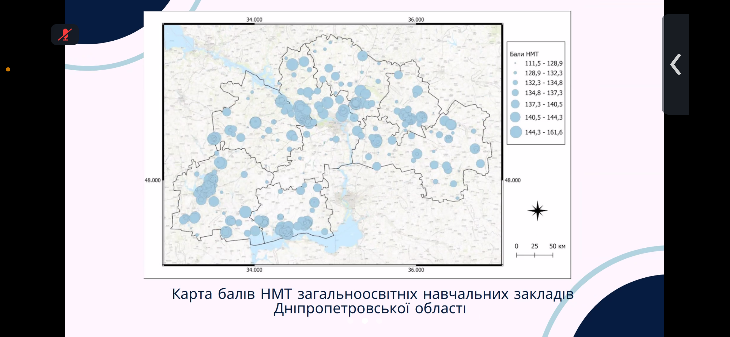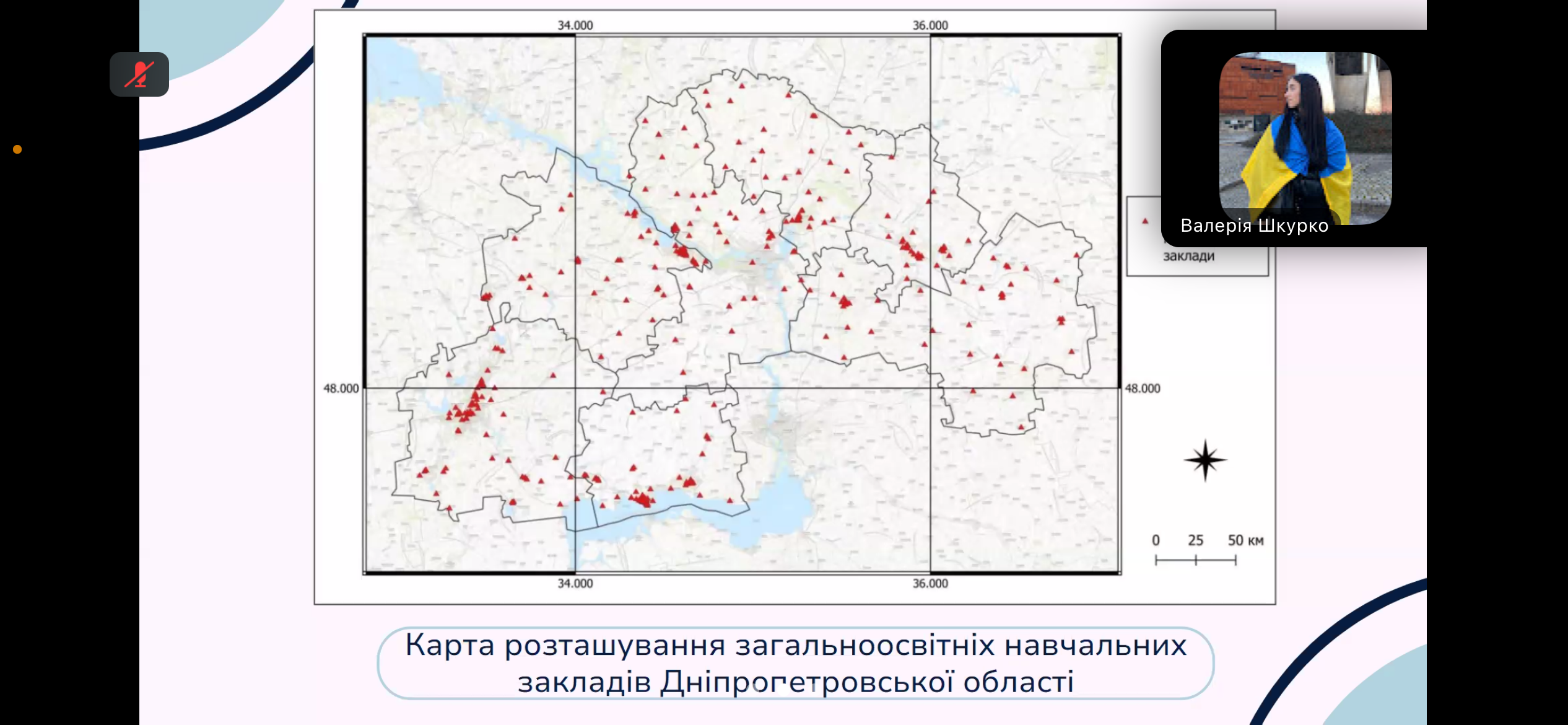Цікавою була робота Валерії Шкурко «Геопросторовий аналіз результатів національного мультипредметного тесту в Дніпропетровській області». Валерія продемонструвала вміння аналізувати статистичну інформацію та оригінальний картографічний матеріал, створений на її основі.