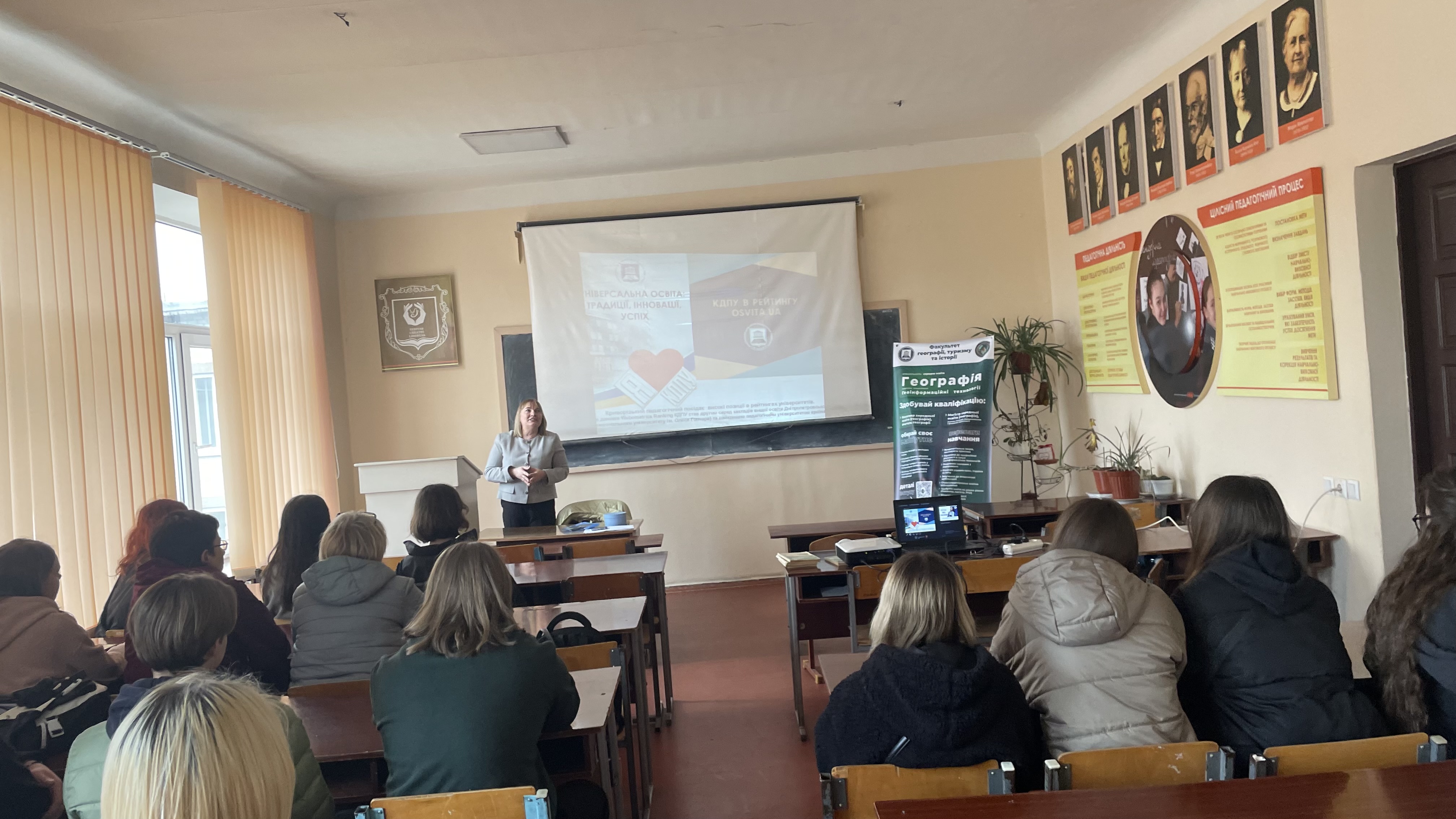 Під час зустрічі учні дізналися, що географія – це наука, що всебічно розвиває особистість, допомагає досліджувати світ, моделювати процеси в природі та суспільстві. Майбутні спеціалісти окрім професії вчителя географії, опановують новітні інформаційні, ГІС технології, вчяться комп’ютерному моделюванню.