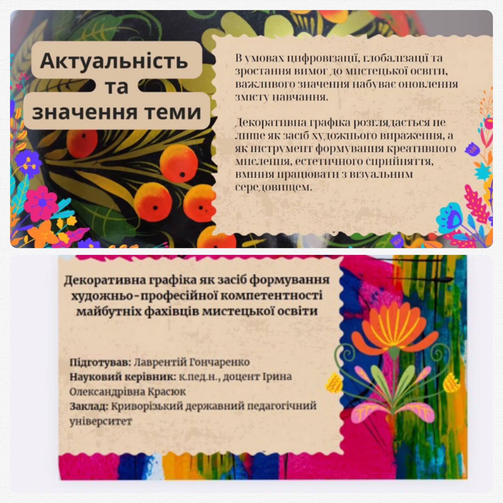 • Гончаренко Лаврентій, магістр – з презентацією на тему декоративної графіки як засобу формування художньо-професійної компетентності;