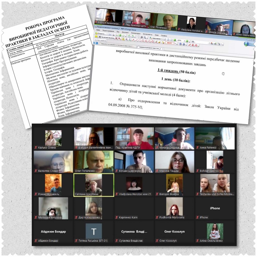 | Переважна більшість студентів ІІІ курсу (природничого факультету, факультету мистецтв, факультету української філології, факультету іноземних мов) проходили виробничу практику в КЗПО «ДТОВ «Сонячний» КМК», де відпочивало чимало дітей військових. Тут для них був створений безпечний простір. За допомогою різних технік та ігор, якими студенти оволоділи під час підготовки до роботи в дитячих закладах оздоровлення та відпочинку, вони допомагали дітям позбавитися негативних емоцій, зняти стрес. Студенти проводили з дітьми релаксаційні вправи, дихальні вправи, використовували арт-терапію, малювання, ліплення та заняття на природі. Задля організації змістовного дозвілля вони організовували ігри в шахи, проводили тематичні вечори, розваги, конкурси, змагання, залучали дітей до перегляду та обговорення кінофільмів, мультфільмів. |