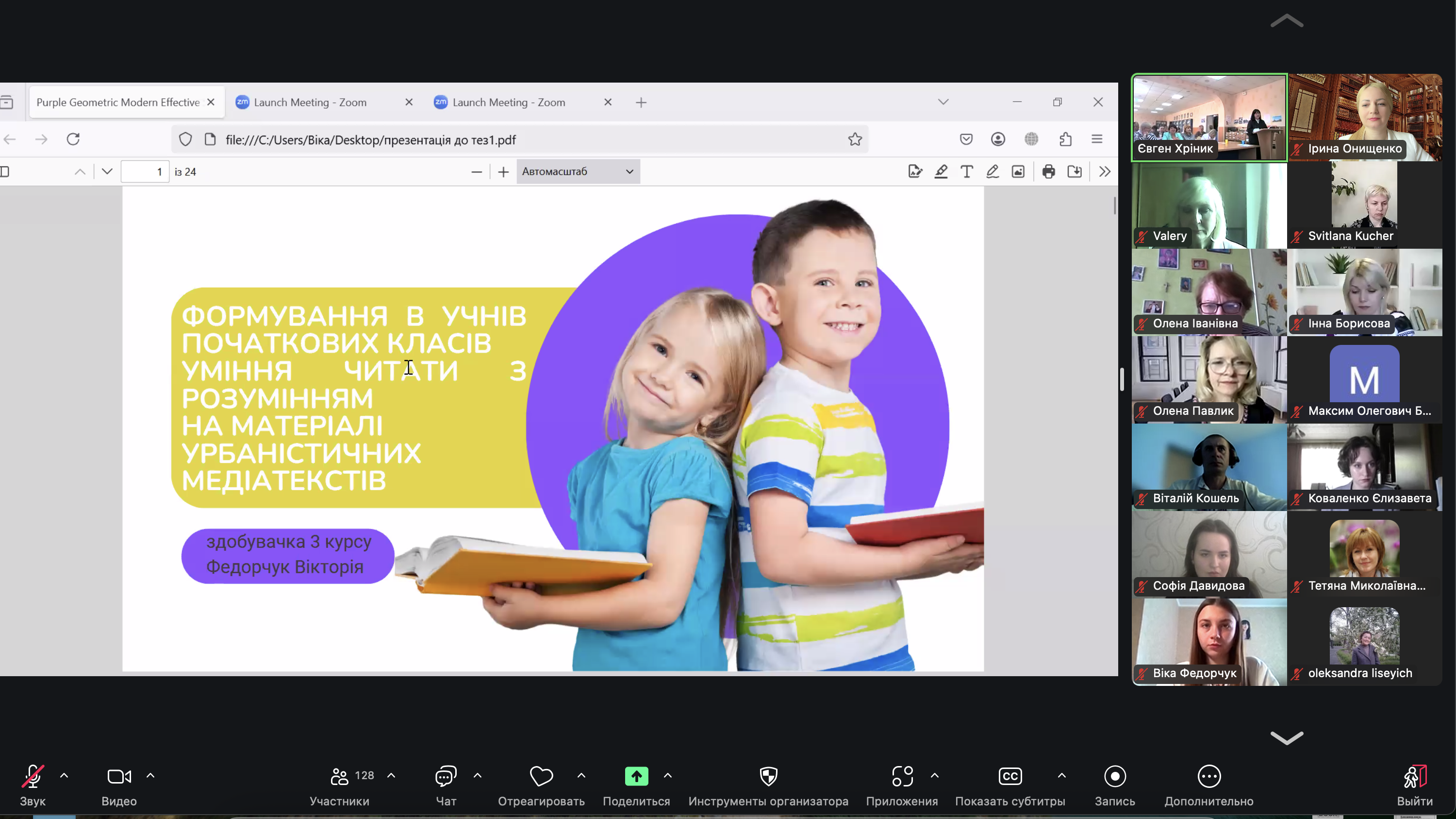 6. Федорчук Вікторія Василівна, КЗ «Нікопольський фаховий педагогічний коледж» ДОР», тема доповіді «Формування в учнів початкових класів уміння читати з розумінням на матеріалі урбаністичних медіатекстів» (керівник: к. пед. н., доцент Костолович Т. В.).