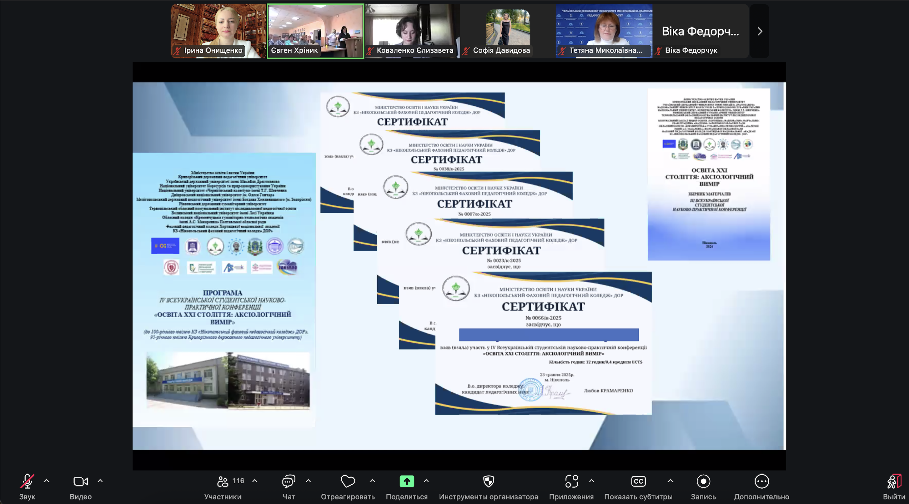1. Давидова Софія Сергіївна, КЗ «Нікопольський фаховий педагогічний коледж» ДОР», тема доповіді «Особливості використання цифрових онлайн-платформ та їх вплив на психічний розвиток особистості молодшого школяра в умовах дистанційного навчання» (керівник: к. психол. н., викладач Семенча Л. Г.).
