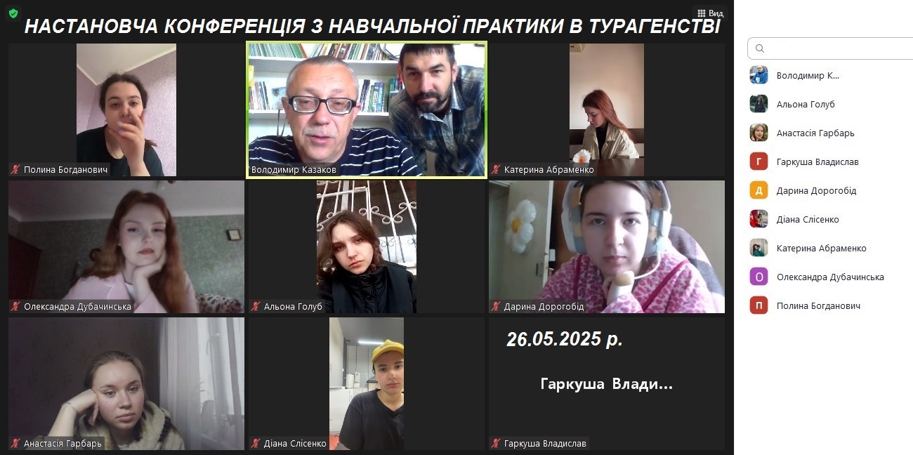 26 травня 2025 року відбулася настановча конференція з навчальної практики у турагенстві студентів 3-го курсу спеціальності 242 Туризм і рекреація.